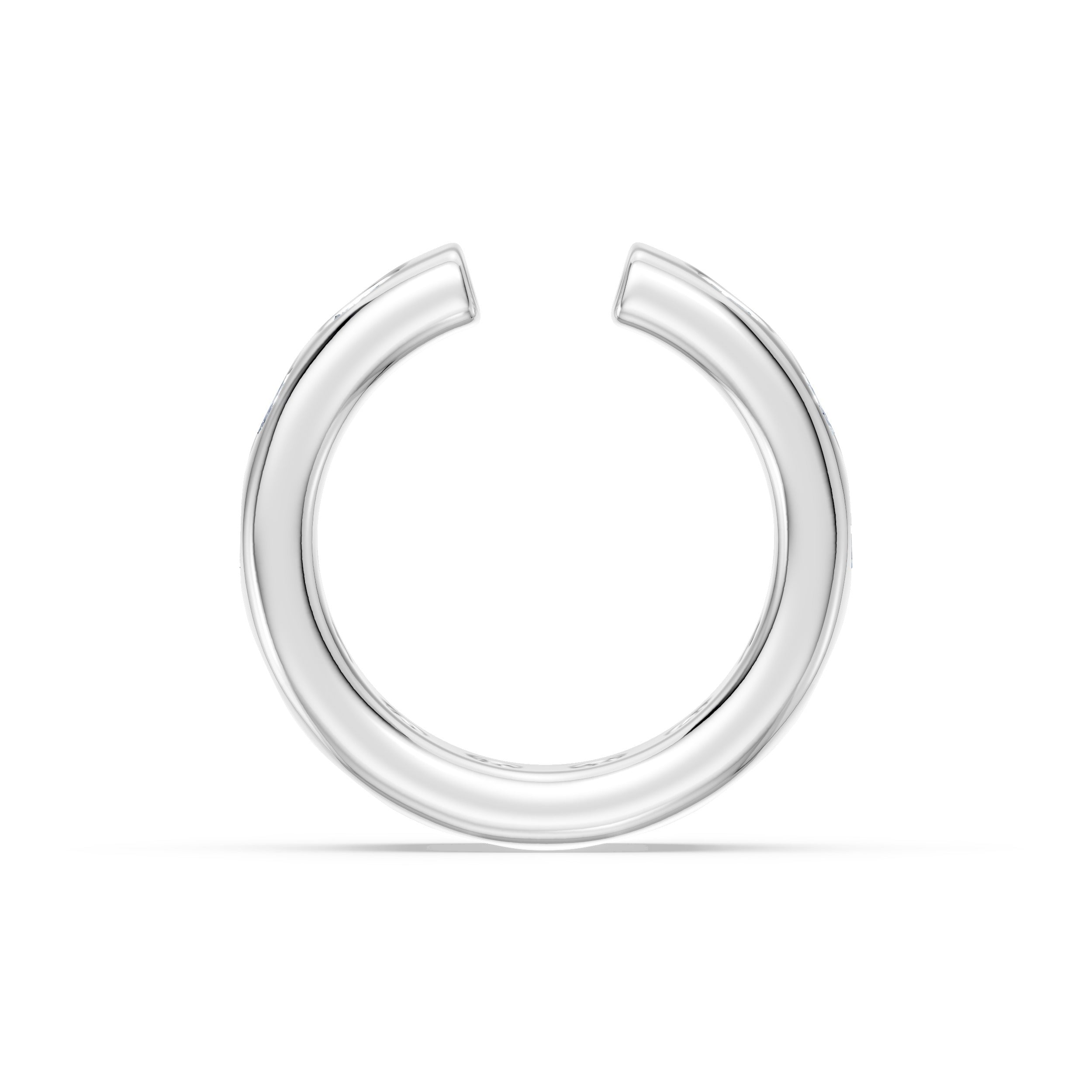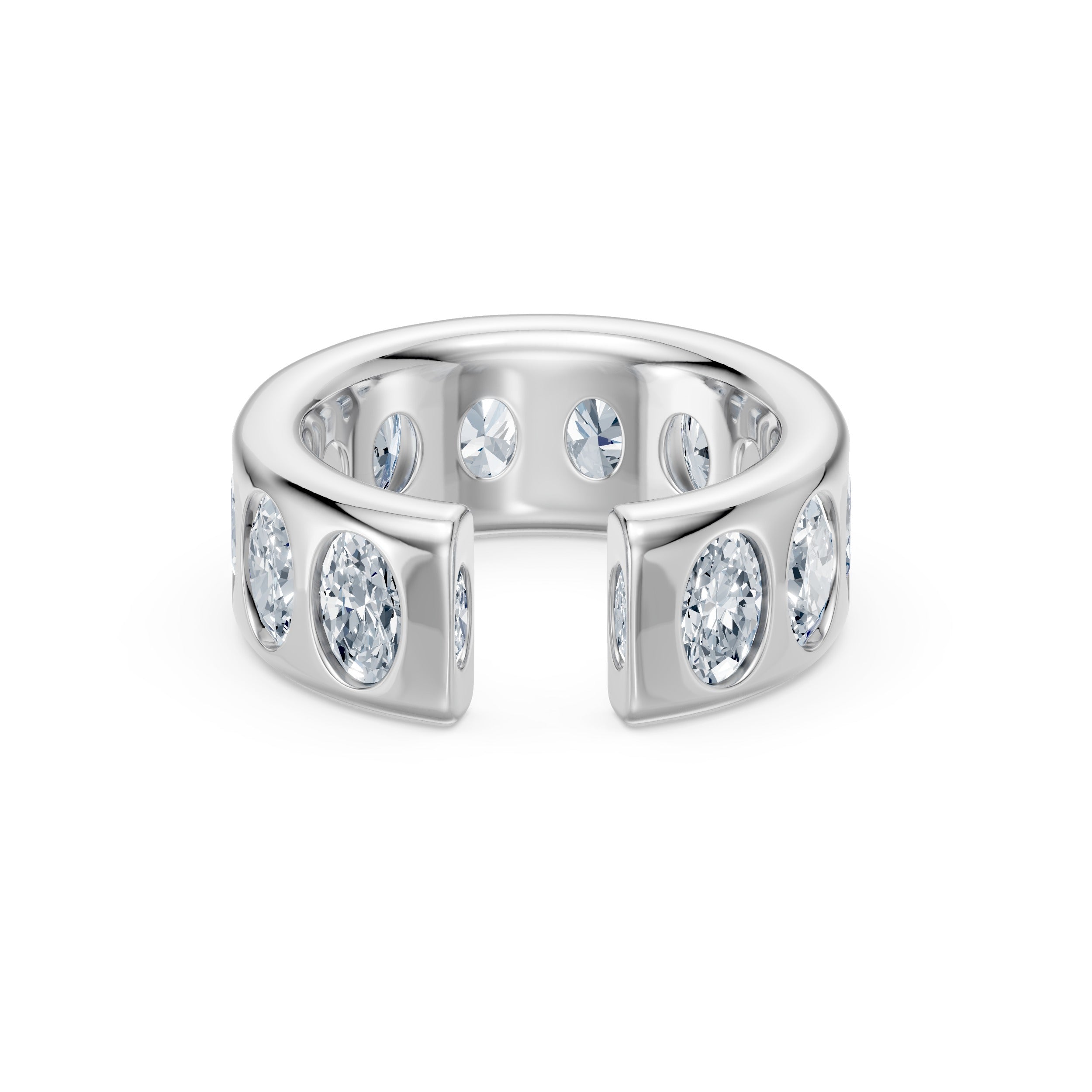 This Polished Band with Oval-Cut Stones and Oval Accents celebrates symmetry and balance. The elongated oval-cut moissanite stones run across the band in a clean, linear formation, while the smaller oval accents echo the primary stones, reinforcing a sense of rhythm and cohesion.