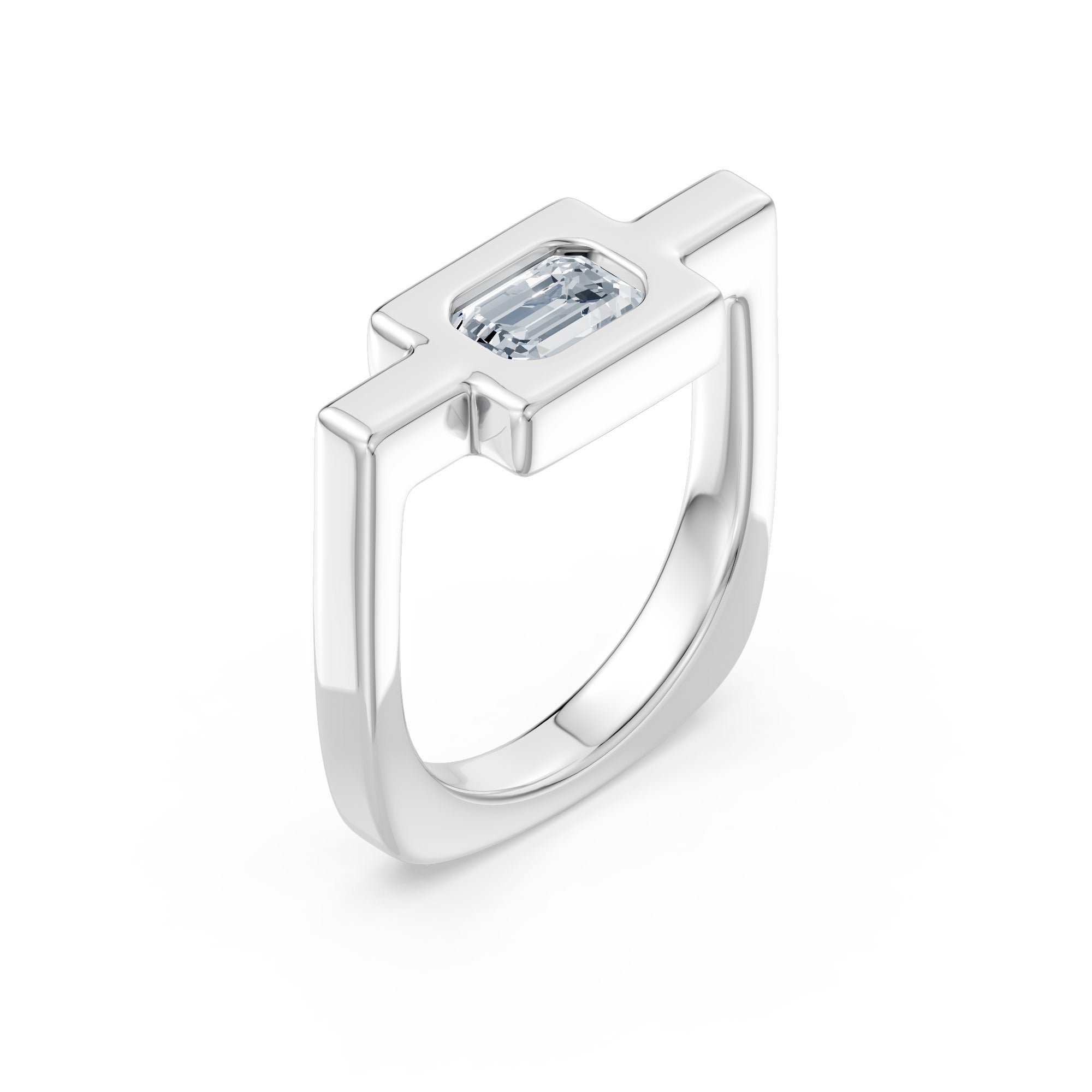 High Polished Ring with Flush-Set Emerald Cut Stone