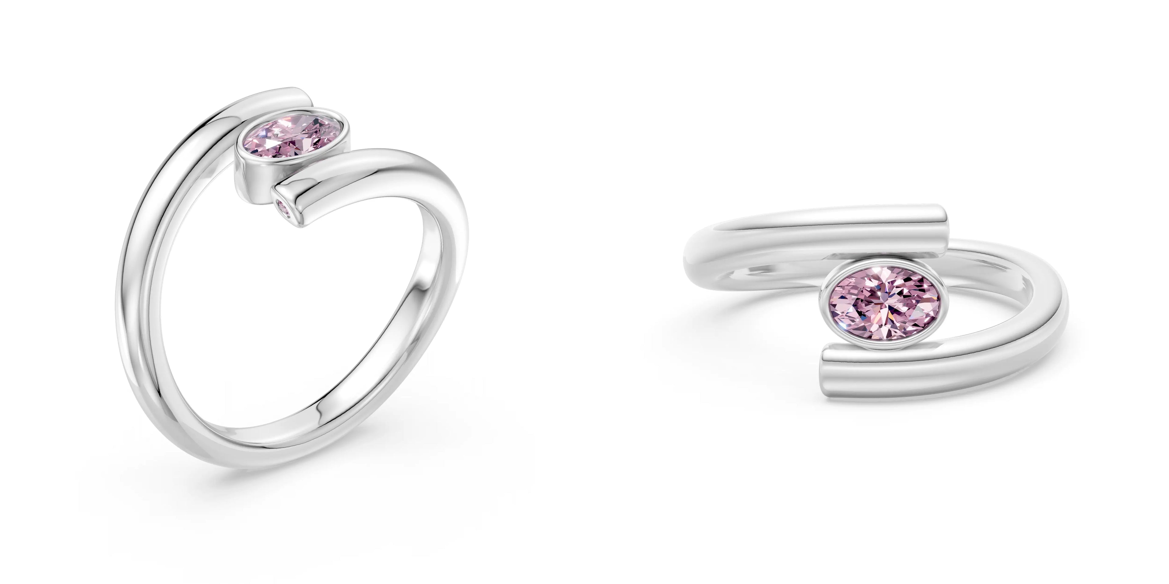 The Polished Ring with a Pink Sapphire and Round-Cut Accents adds a softer, more expressive note to the Rhizic collection. At its center, the oval lab-grown pink sapphire introduces a calm, warm-toned focal point making it expressive without feeling overly delicate. Surrounding or complementing it, the round-cut accents add gentle sparkle, amplifying the color and catching the light in small, considered flashes